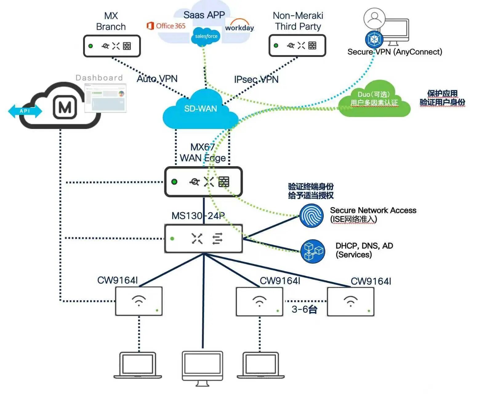 Meraki 讓企業輕鬆跨越分支互聯與安全辦公的當下難題,但零信任與 SASE 的終局,需要更細顆粒的身份與訪問治理協同推進。透過 Cisco ISE(細粒度存取控制)強化「誰能進」;透過 Cisco Duo(身分安全)鞏固「誰在使用」;結合 Cisco Secure Connect / Secure Access,為分支、遠端與雲端應用提供一體化安全接入,最終將「按需信任」的原則貫穿網路、身分與應用全鏈路。
